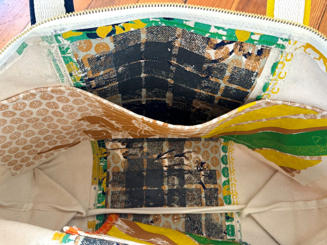 Beautiful Large Vintage Floral Satchel Tote Bag - WITH zip + Coordinating Plaid Print inside